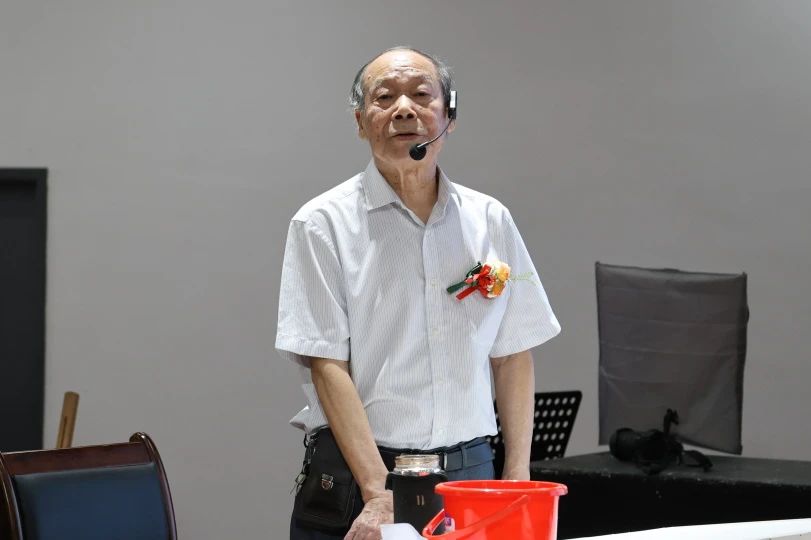 广西水彩画家协会主席黄华兆教授讲授少数民族水彩人物的注意事项并进行创作示范。培训活动结束后教育局黄雅文老师献花给黄华兆教授表示感谢。
